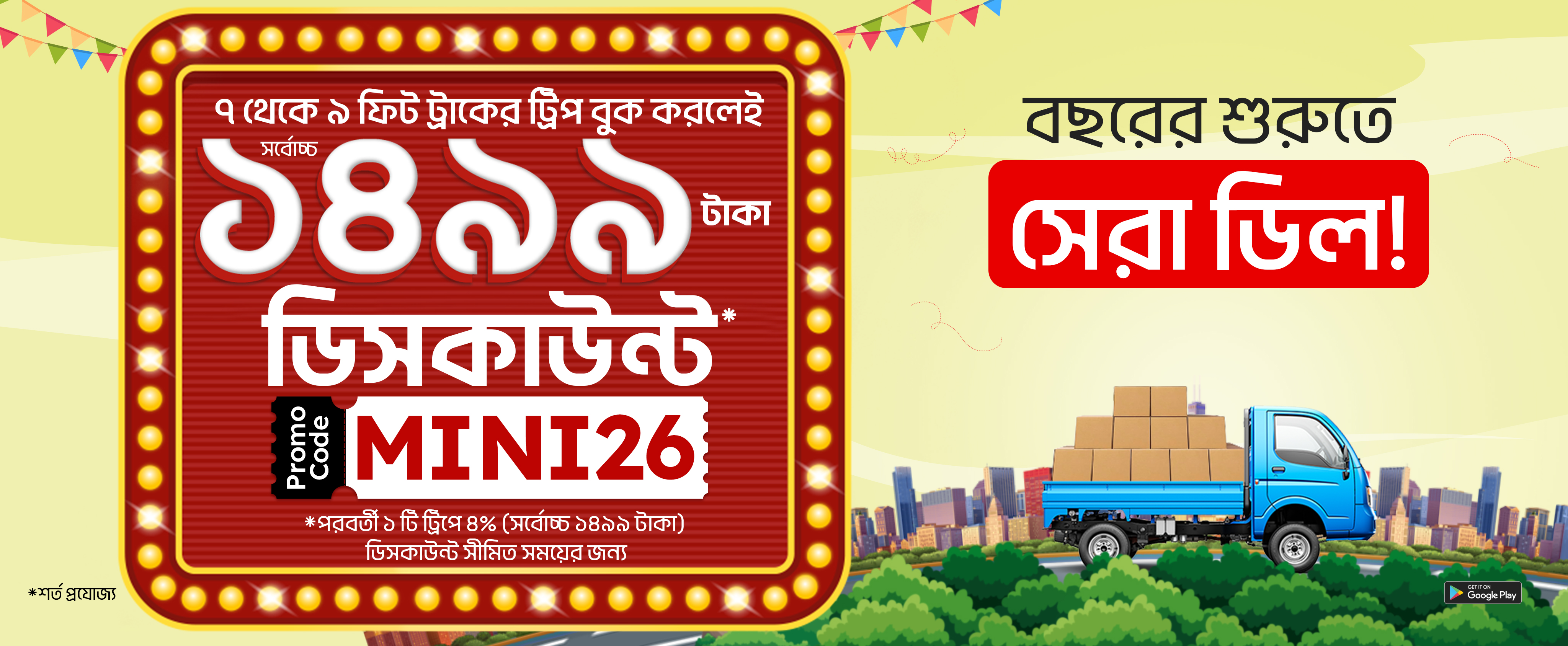- এই অফারটি ৭ থেকে ৯ ফিট ট্রাকের, ১ টি ট্রিপের জন্য প্রযোজ্য।