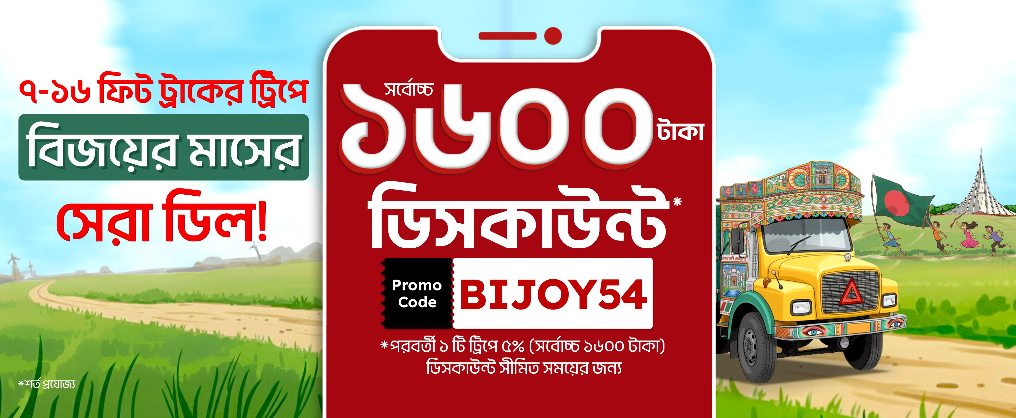 • এই অফারটি ৭ থেকে ১৬ ফিট ট্রাকের, ১ টি ট্রিপের জন্য প্রযোজ্য।